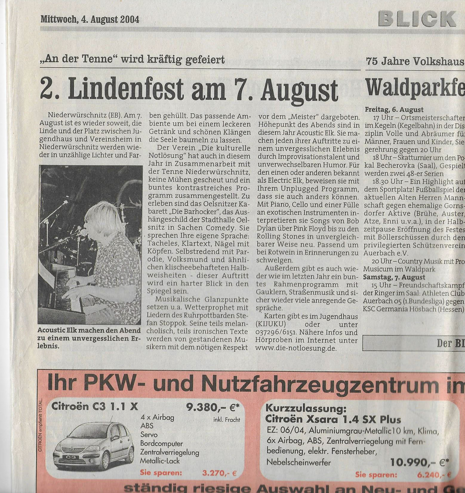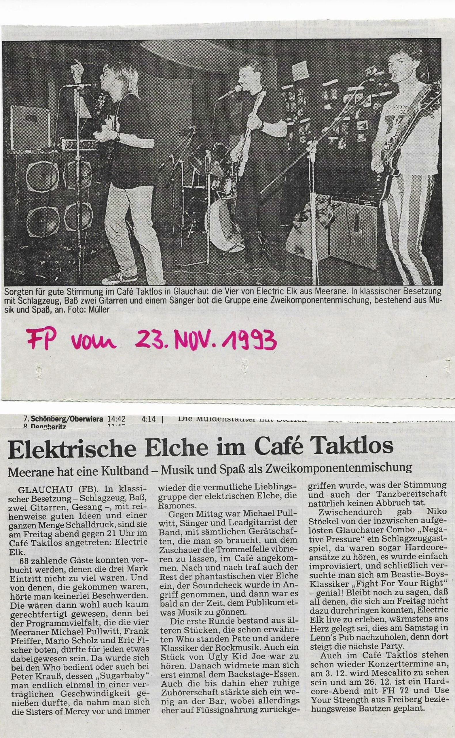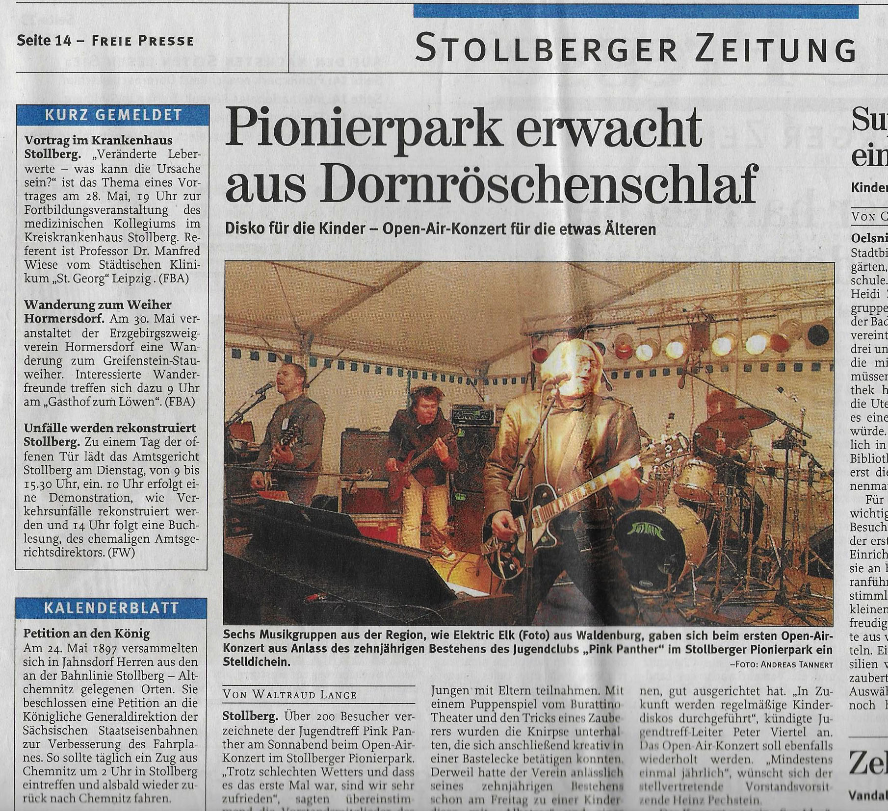 Für intime Stunden widmen sich die Jungs Unplugged-Musik, welche mit Piano, Cello und einem Park an exotischen Instrumenten dargeboten wird. Passendes also auch zum Rotwein. Fremdes und eigenes Material wird in unvergleichlicher Weise interpretiert und immer neu vorgetragen. Also, verpassen Sie nicht den nächsten Gig der ewigen Newcomer, seien Sie dabei beim nächsten ELECTRIC ELK – Konzert!