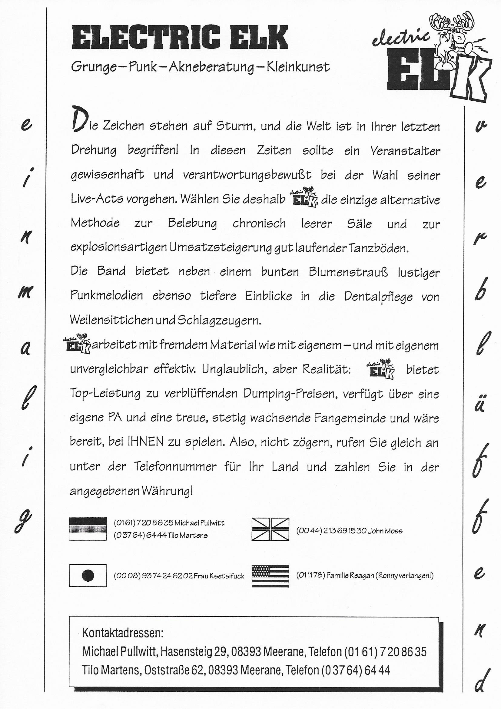 Dessen ungeachtet, operieren ELECTRIC ELK schon seit 13 Jahren mit diesem schwierigen Instrumentarium. Und dies mit ungeahnter Leichtigkeit.